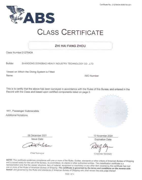 Certificate from ABS (American Bureau of Shipping) 美國船級社認(rèn)證 |